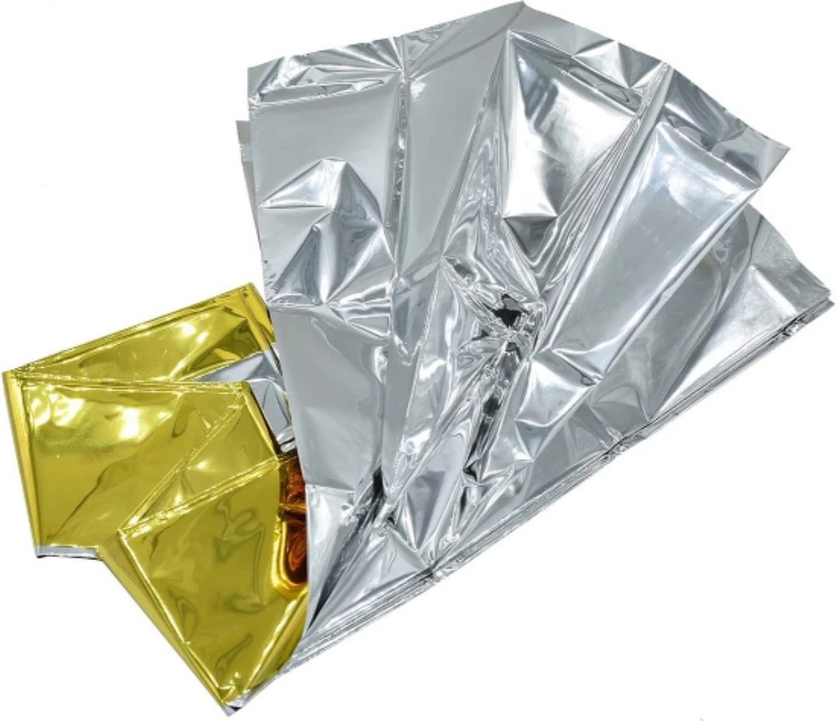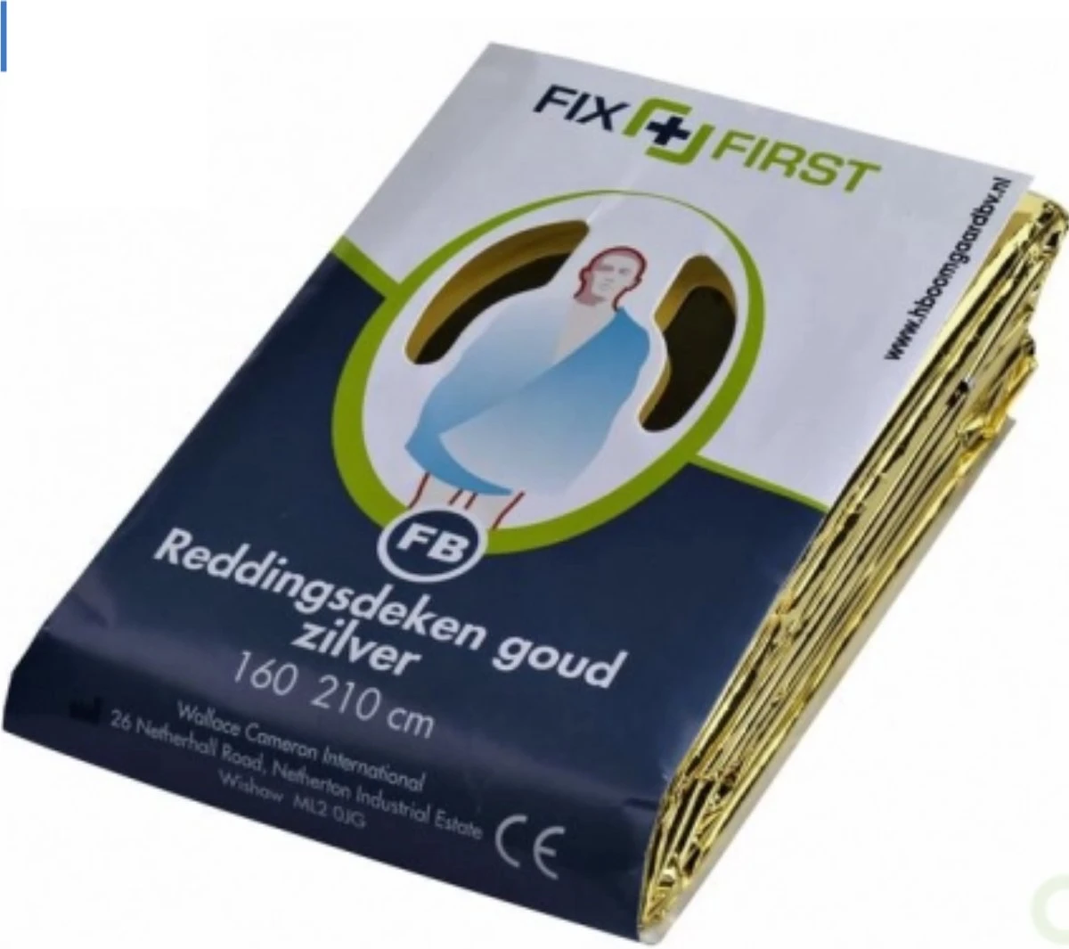 Zilverkleurige zijde naar het lichaam richten. De aluminium gemetalliseerde zijde refelecteert ongeveer 80% van de lichaamswarmte.Op die manier wordt een snel temperatuurverlies en bevriezing voorkomen.