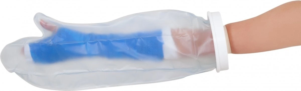 Beschermt uw gips tijdens het douchen en baden. Gemakkelijk aan te brengen. Meerdere malen te gebruiken. Niet geschikt voor open en onbedekte wonden. Niet geschikt om mee te zwemmen.