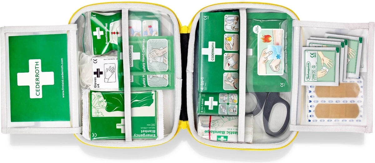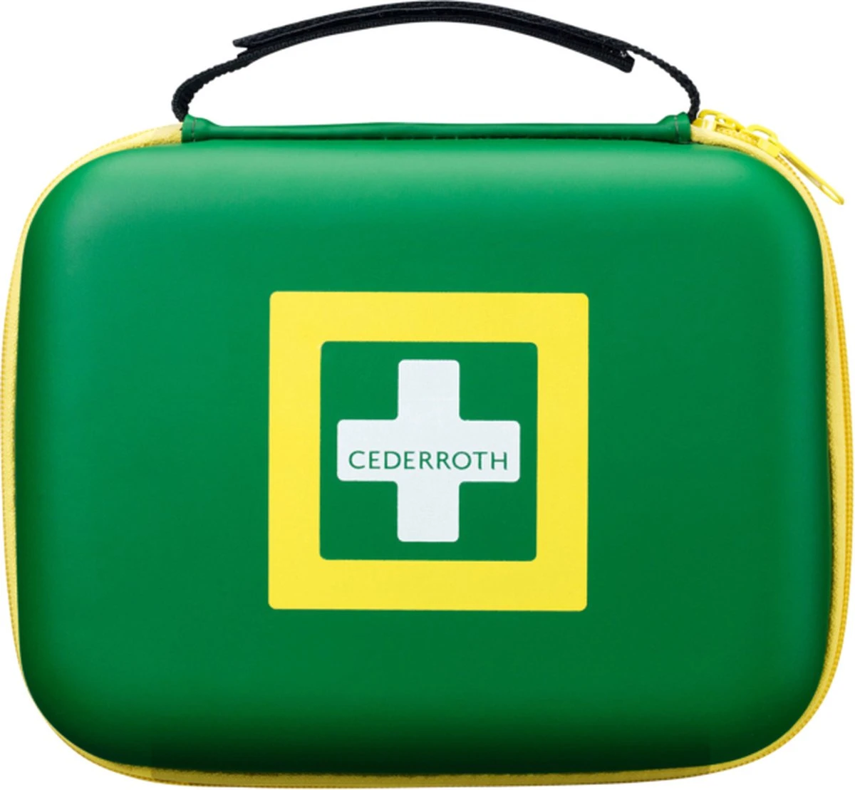 Cederroth First Aid Kit Medium is een goed uitgeruste eerstehulpkoffer, gemaakt van een slijtvast rubberachtig materiaal met mat oppervlak om stof, vocht en vuil buiten te houden. De uitrusting wordt hygiënisch schoon gehouden en is altijd klaar voor gebruik. De producten zijn verpakt in transparante plastic zakken voor een duidelijk overzicht, en het is gemakkelijk om het juiste product te vinden wanneer iedere seconde telt. Alle producten zijn voorzien van duidelijke zelfverklarende instructies. De signaalkleuren groen en geel zorgen dat de koffer al van verre zichtbaar is. Handige handgreep met verstelbaar klittenband om de koffer gemakkelijk stevig te bevestigen of mee te dragen.