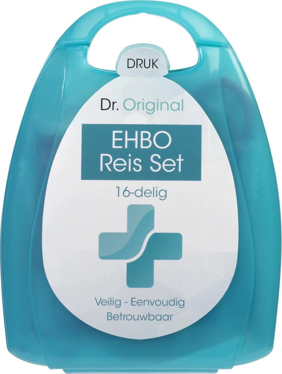 Met de Dr. Original EHBO Reis Set kun je met een gerust gevoel op reis gaan. Deze compacte 16-delige EHBO set is handig op te bergen en bevat o.a. pleisters, een EHBO masker voor mond-op-mond-beademing, reinigingsdoekjes, tape en een schaartje.