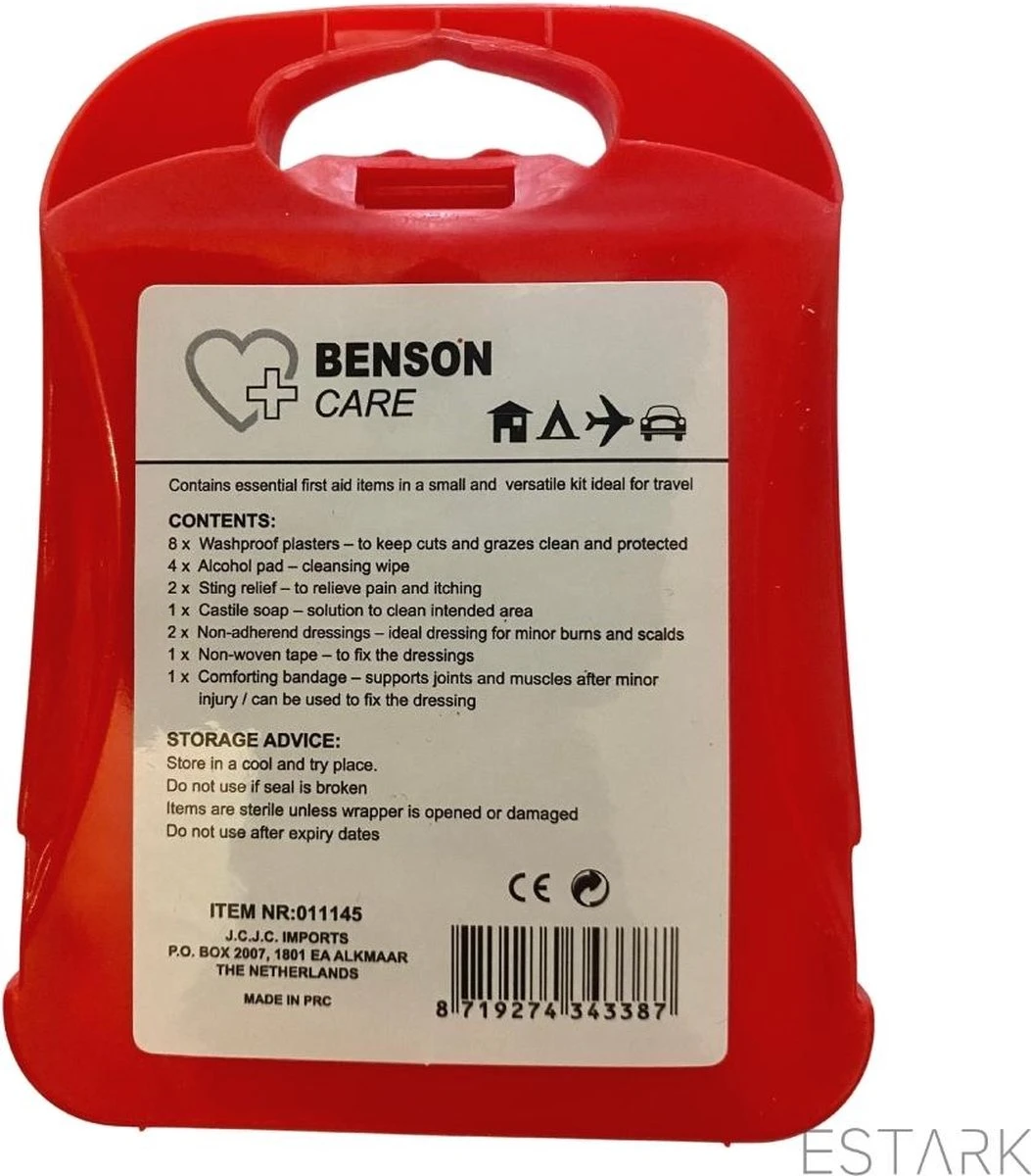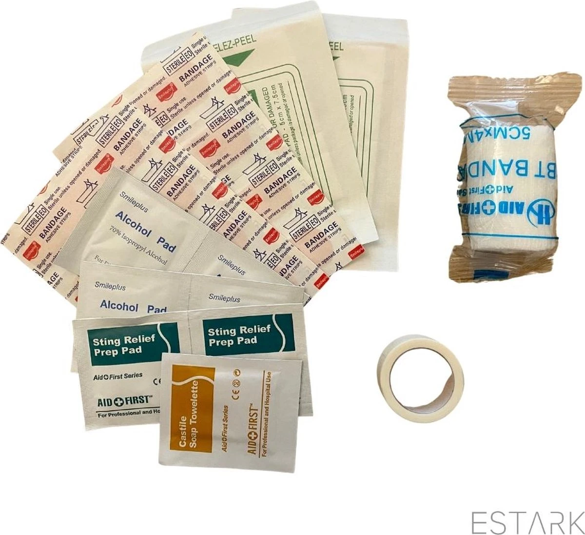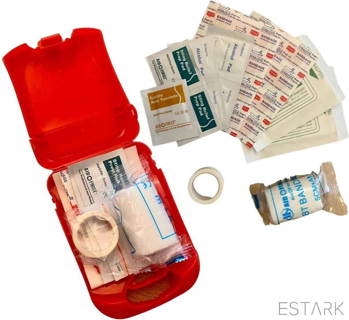 Goedgevulde verbandtas om, indien nodig, eerste hulp te kunnen verlenen bij een ongeval.