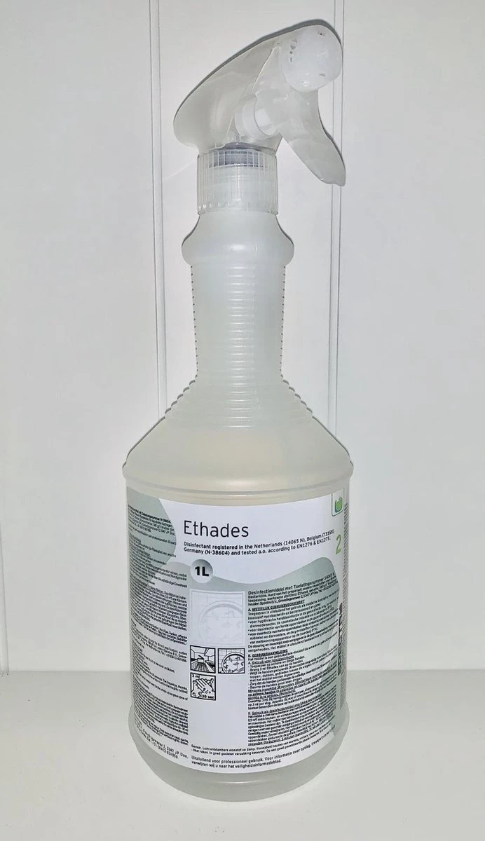 Ethades is een multifunctioneel product geschikt voor het desinfecteren van de huid en kleine oppervlakten, op basis van de zuiverste Ethanol (74%) en droogt streeploos op. Daarnaast is Ethades een huidvriendelijk middel..