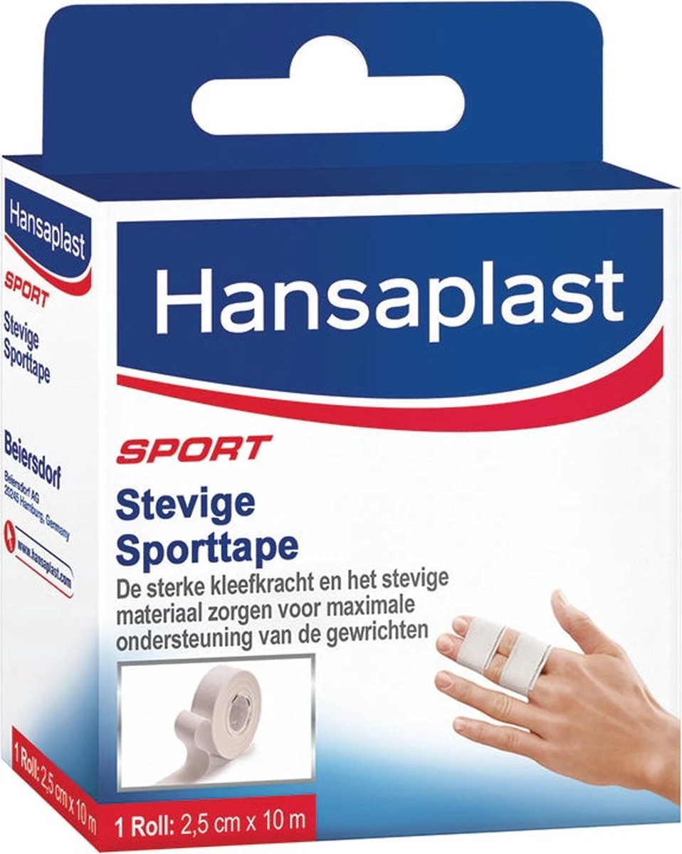 Hansaplast Stevige Sporttape Smal geeft ondersteunig voor zwakke of geblesseerde gewrichten en is speciaal geschikt voor polsen en handen. Door de druk van de tape wordt de rek op spieren, pezen en minder sterke delen van het lichaam vermindert om zo blessures te voorkomen. De tape dient dan als het ware als kunstmatige spier, pees of gewrichtsband.Hansaplast Stevige Sporttape Smal:- biedt ondersteuning bij zwakke gewrichten- voor polsen en handen- eenvoudig af te scheuren- 2.5 cm x 10 meter (BxL)- latexvrijGebruik voor ondersteuning van enkels, schouders en ellebogen Hansaplast Stevige Sporttape Breed