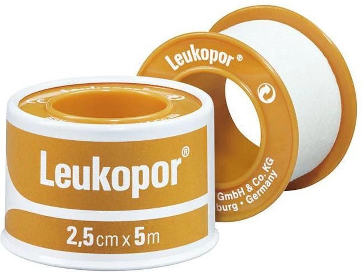 Leukopor van Leukoplast is een hypo-allergenen, zachte hechtpleister die in het bijzonder geschikt is voor de (zeer) gevoelige huid. Deze soepele en waterafstotende tape is perfect voor het vastzetten van onder andere gaaskompressen, (wond)verbanden en windsels. Leukopor is 2.5 cm breed, 5 m lang en kan eenvoudig op maat worden gescheurd/geknipt. Leukopor van Leukoplast is ook verkrijgbaar in de maten: 1.25cm x 5m en 5cm x 5m.