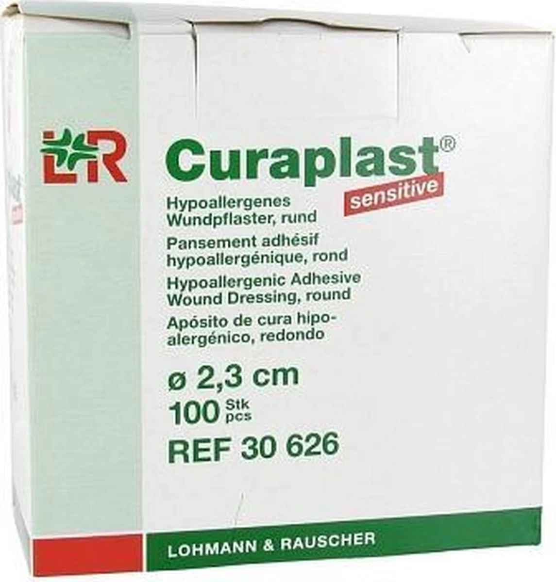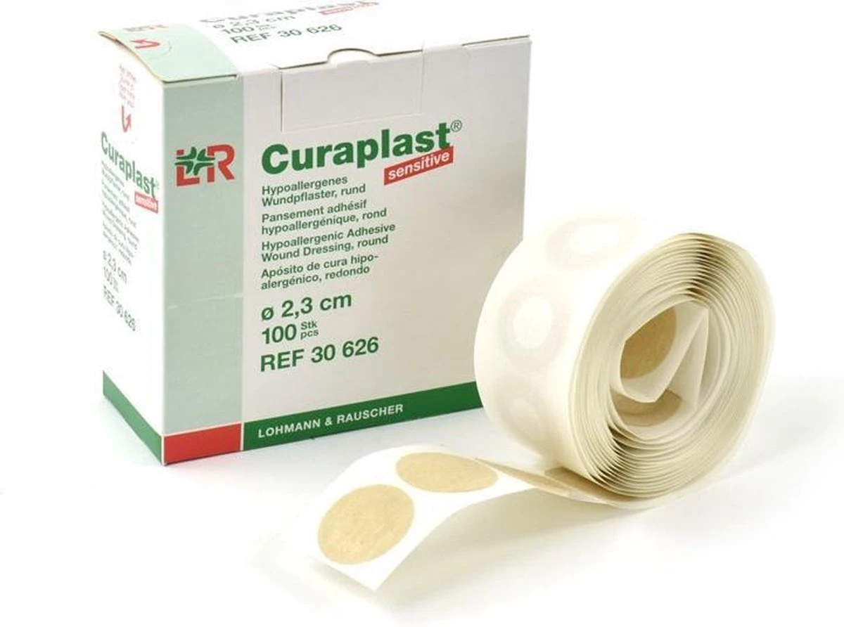 De ronde Curaplast sensitive injectiepleister van Lohmann-Rauscher is bijzonder zacht en soepel en zeer geschikt voor patiënten met een gevoelige huid door de huidvriendelijke polyacrylaatlijm. Door de netfolie over het wondverband wordt het risico van verkleving met de wond doeltreffend gereduceerd.