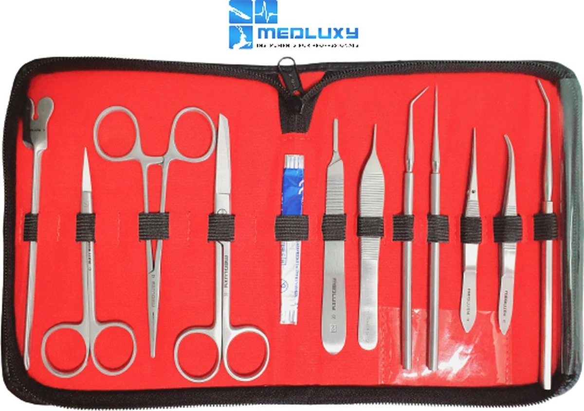Deze MEDLUXY Dissectie set met 11 instrumenten, is ideaal voor studenten in de geneeskunde en hobbyisten. De set bevat 11 instrumenten vervaardigd van chirurgisch roestvrij staal. Hierdoor zijn ze gemakkelijk te reinigen. En 1 scalpelmesje. De instrumenten zitten in een compact en stevige etui, makkelijk schoon te maken en handig om mee te nemen.