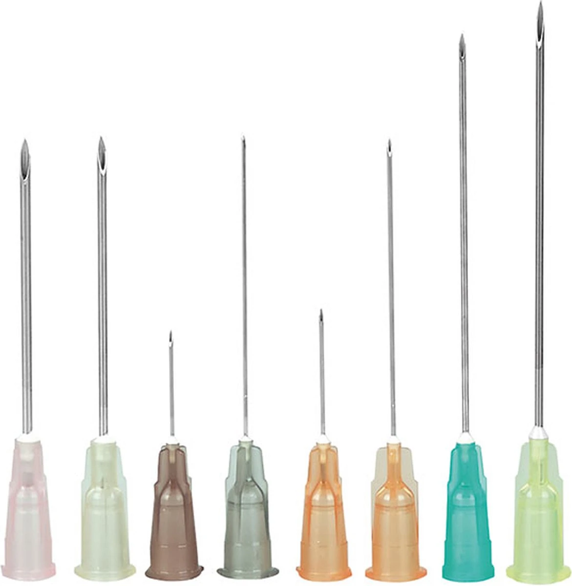 Steriele naalden, enkelvoudig gebruik, gebruik voor injectieprocedures en/of voor het opzuigen van medische vloeistoffen. Internationaal gekleurd, met een transparante hub.