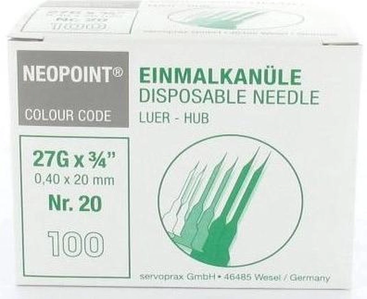 Neopoint Injectienaalden 27Gx½”(0,4x12mm) grijs, 100 stuks