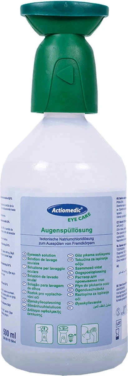 Een vuiltje in uw oog? Het is belangrijk om snel te handelen. Dit kan met de Actiomedic oogspoeling met een flaconinhoud van 500ml. Deze oogspoeling bestaat uit sodium chloride 0.9% en helpt bij het reinigen van je ogen bij splinters, stof of vuil. De flacon is voor eenmalig gebruik en heeft een ergonomische oogschelp. Met deze flacon kan circa vijf minuten gespoeld worden.Beschrijving:Actiomedic oogspoeling met een flaconinhoud van 500ml. Deze oogspoeling bestaat uit sodium chloride 0.9% en helpt bij het reinigen van je ogen bij splinters, stof of vuil. De flacon is voor eenmalig gebruik en heeft een ergonomische oogschelp. Met deze flacon kan circa vijf minuten gespoeld worden.Toepassing:Plaats de ergonomische oogkap op het bevuilde oog, draai de oogkap en knijp in de fles. Voor gebruiksinstructies zie ook de flacon. Logistieke info:Artikelnummer: AC.10.0100Actiomedic Oogspoelfles met sodium chloride 0,9% 500MLInhoud verpakking: 1 stukInhoud overdoos: 6 x 1 stuks