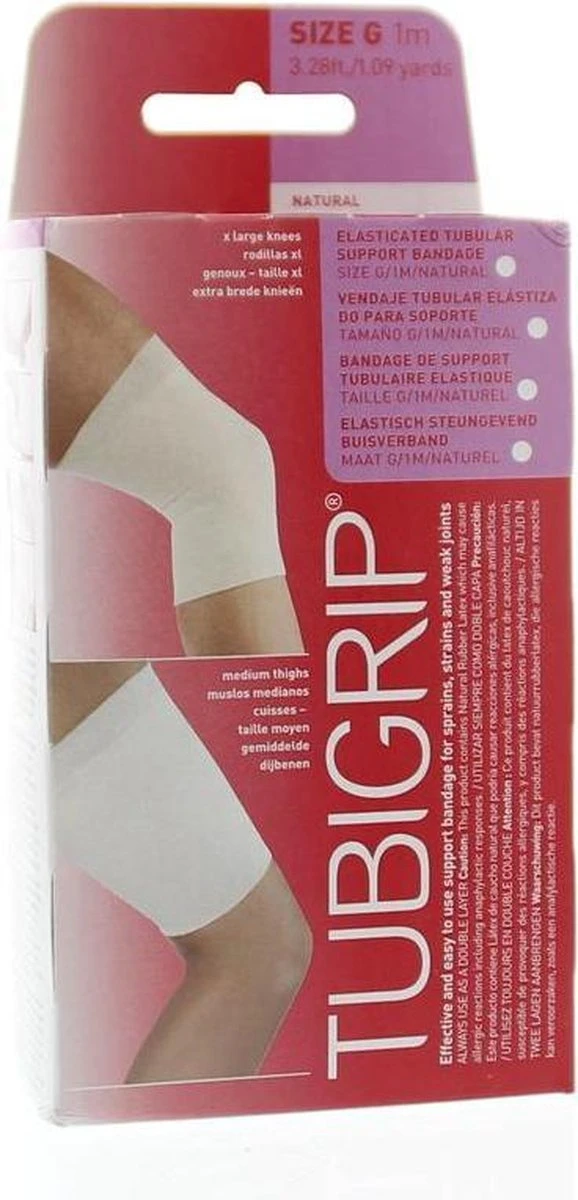 Tubigrip G 1m Wit kan gebruikt worden als steungevend verband voor onder andere verrekkingen en knelt niet af.